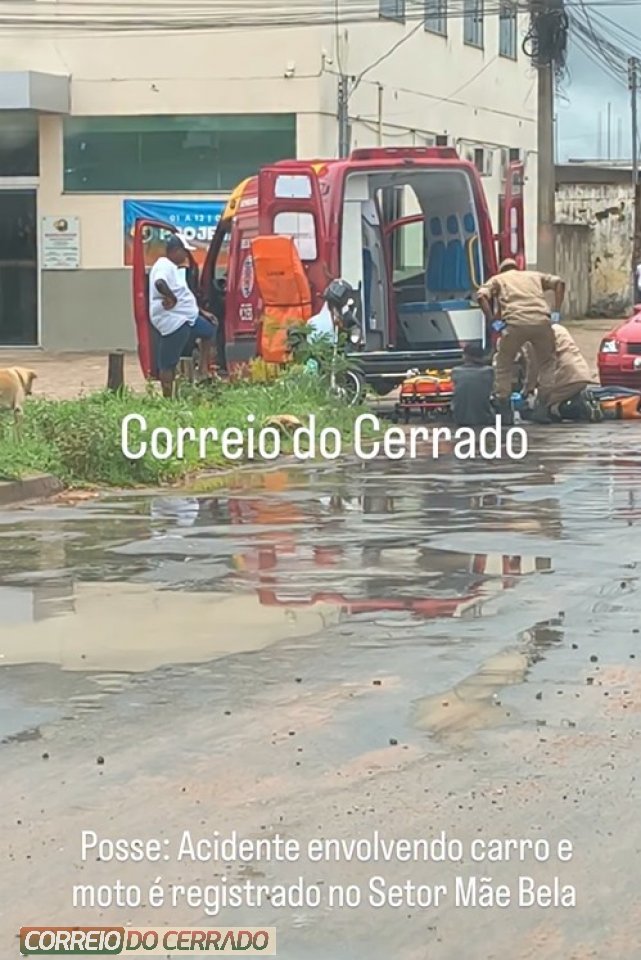 No final da manhã desta quinta-feira, 18 de dezembro, por volta das 12:10hrs, um acidente envolvendo carro e moto foi registrado no Setor Mãe Bela em Posse/GO.