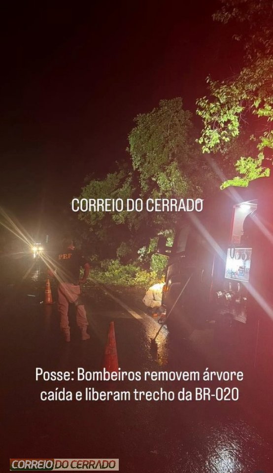 Na noite desta segunda-feira, 23 de fevereiro, a 10ª Companhia Independente Bombeiro Militar foi acionada pela Polícia Rodoviária Federal para atender uma ocorrência de queda de árvore sobre a pista de rolamento na BR-020, KM 189, no município de Posse/GO.