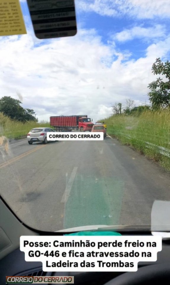 Por volta das 13h, um caminhão perdeu o freio ao descer a conhecida Ladeira das Trombas, na GO-446, sentido Iaciara/GO. Sem controle, o veículo acabou ficando atravessado na pista, chamando a atenção de quem passava pelo local.