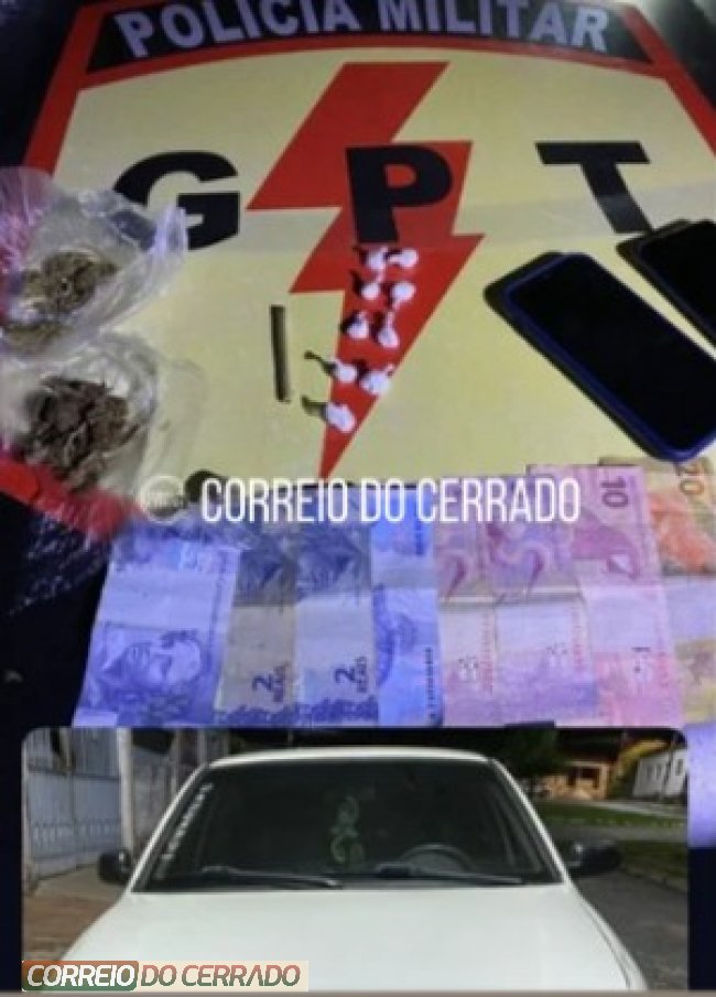 No momento da abordagem, o condutor do automóvel arremessou um objeto para a garagem de uma residência próxima. Durante a verificação, os policiais perceberam odor característico de maconha no interior do veículo e localizaram porções de substâncias análogas à cocaína e à maconha, além de materiais utilizados para embalagem de entorpecentes.