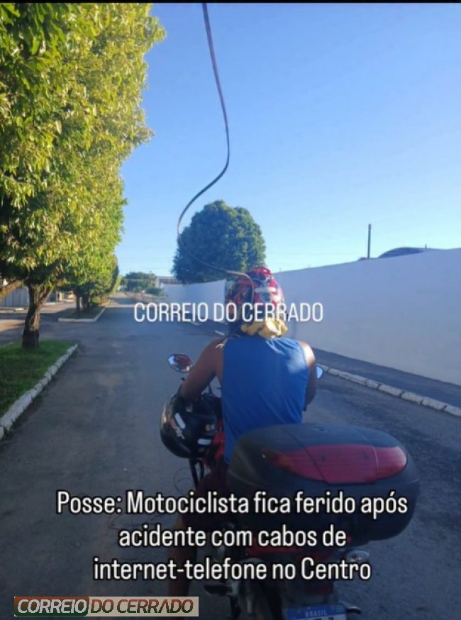 Posse: Motociclista fica ferido após acidente com cabos de internet no Centro