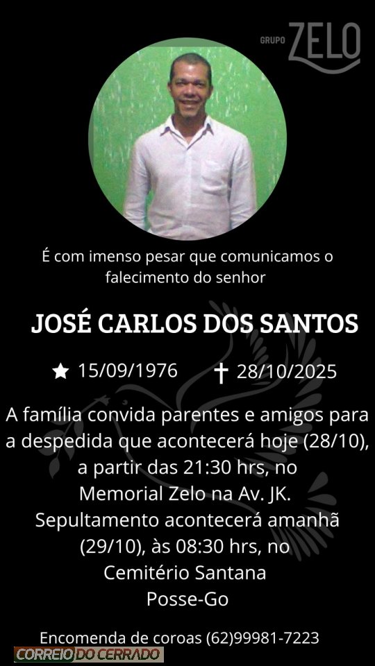 O Grupo Zelo e a família dos Santos, comunicam com pesar o falecimento de José Carlos dos Santos, ocorrido nesta terça-feira (28), aos 49 anos de idade.
