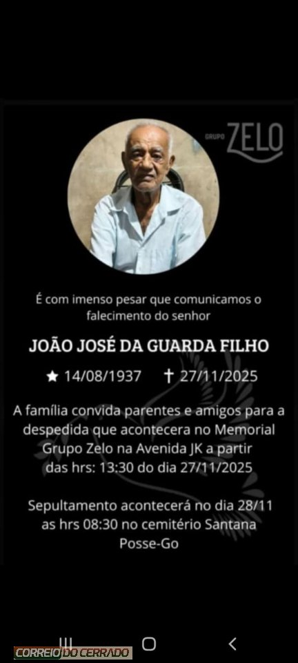 Aos familiares enlutados, as condolências do Correio do Cerrado.