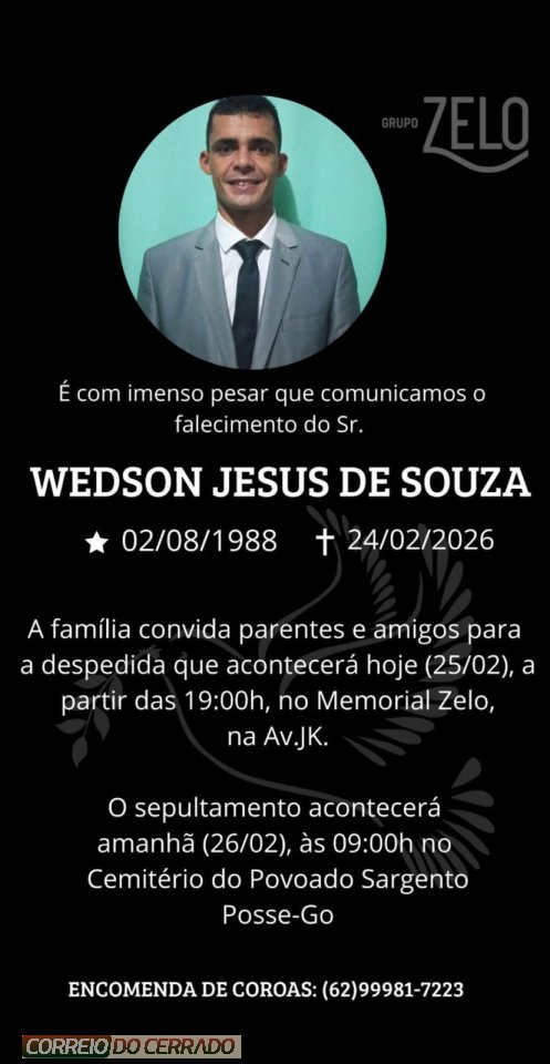 O Grupo Zelo e a família de Souza, comunicam com pesar o falecimento de Wedson Jesus de Souza, ocorrido nesta terça-feira (24), aos 37 anos de idade.