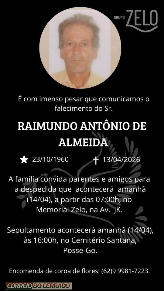 Homem de trajetória marcada pela simplicidade, dedicação e respeito, Raimundo deixa um legado de amizade, trabalho e valores que permanecerão vivos na memória de todos que tiveram o privilégio de conhecê-lo. Sua partida entristece familiares, amigos e toda a comunidade, que hoje se unem em oração e solidariedade neste momento de dor.