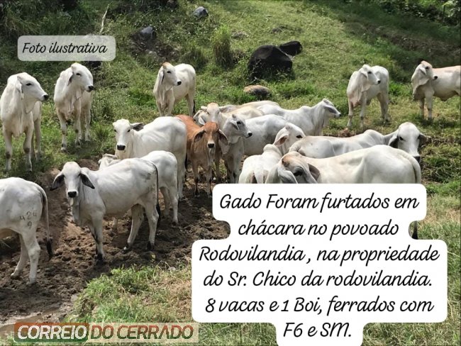 O gado furtado incluía cinco vacas Nelore baia — sendo duas com chifres e três mochas de cor branca —, três vacas amarelas, das quais duas com pelagem rachada e uma com chifre, além de um boi baio.