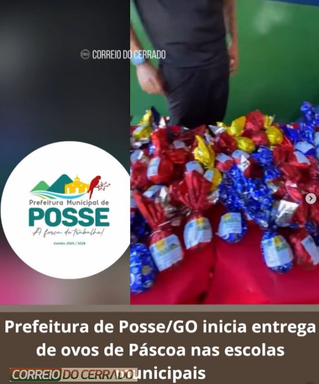06 de abril, segunda-feira — A Prefeitura de Posse/GO iniciou, nesta manhã, a entrega dos ovos de Páscoa para os alunos das escolas municipais do município.