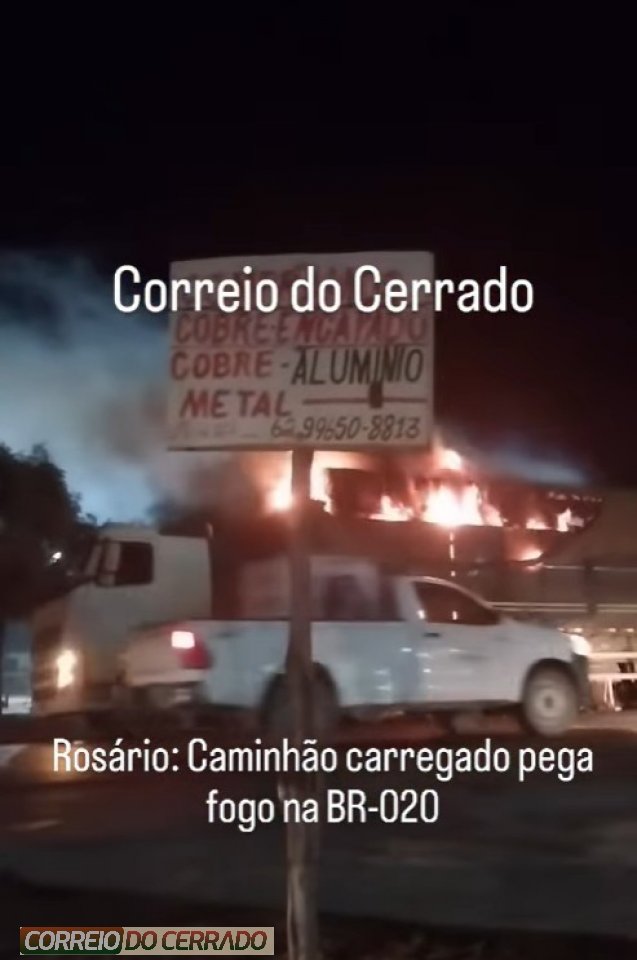Na noite desta sexta-feira, 14 de novembro, um caminhão carregado pegou fogo na BR-020, no perímetro urbano do distrito do Rosário - Correntina/BA.