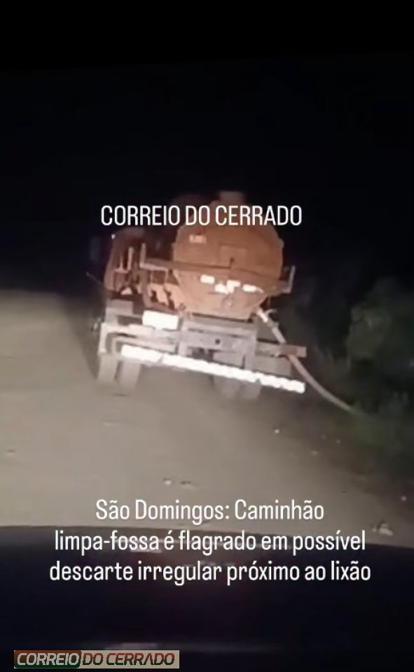 No início da noite desta sexta-feira, 16 de Janeiro, um caminhão limpa-fossa foi flagrado em uma situação de aparente descarte irregular de dejetos às margens de uma estrada, nas proximidades do lixão do município de São Domingos/GO. O registro foi feito por moradores da região, que filmaram a ação e encaminharam as imagens ao Correio do Cerrado.