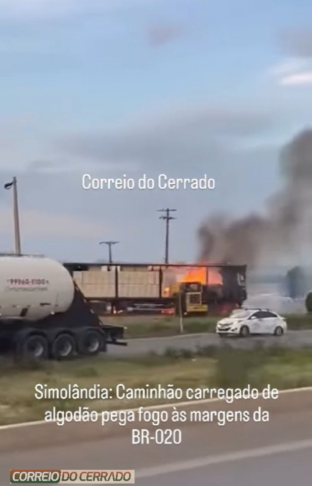 Na tarde desta terça-feira, 18 de novembro, um caminhão carregado de algodão pegou fogo às margens da BR-020, próximo ao Posto DDD em Simolândia/GO.