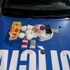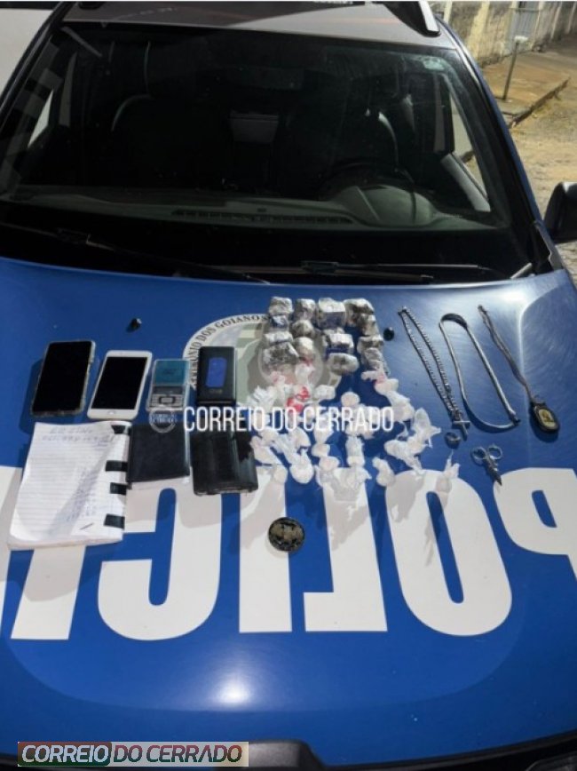 As equipes então se deslocaram até a residência informada, onde foram recebidas por um morador, que autorizou a entrada dos policiais. No local, foi percebido forte odor de substância semelhante à maconha e encontradas várias porções de drogas. Ao todo, foram apreendidas 23 porções de cocaína, 15 de maconha, além de R$ 120,00 em dinheiro, dois celulares (iPhone e Samsung), uma balança de precisão, um carregador portátil, três correntes, um anel de ferro inox, uma tesoura e um caderno de anotações.