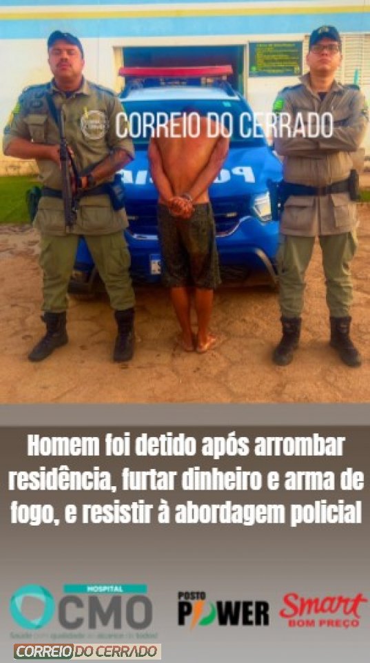 Homem foi detido após arrombar residência, furtar dinheiro e arma de fogo, e resistir à abordagem policial.